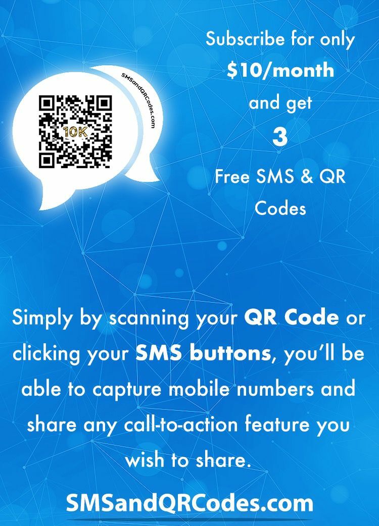 Subscribe for only $10/month and get 3 Free SMS & QR Codes